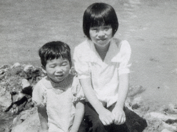 8月6日、爆心から3キロの自宅で被爆したが、母親と戸袋のかげにいたため、軽いけがで済む。